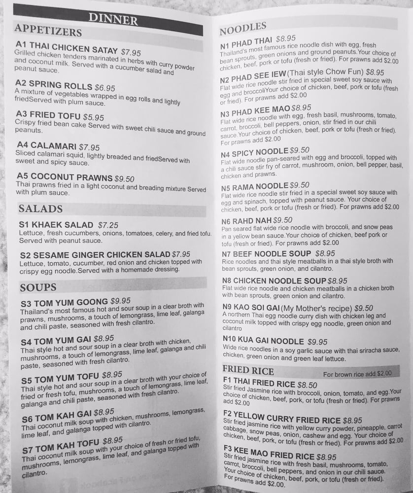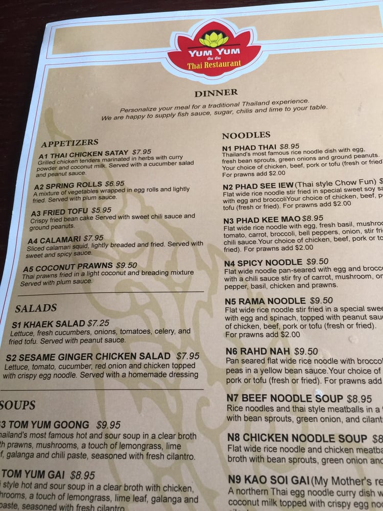 Introducing the Menu at Yum Yum Thai